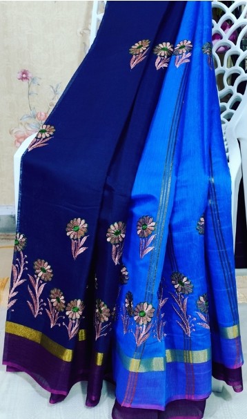 Silk Cotton with Floral Embroidered