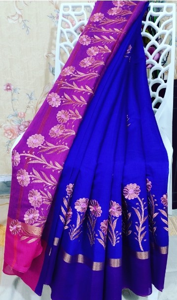 Silk Cotton with Floral Embroidered